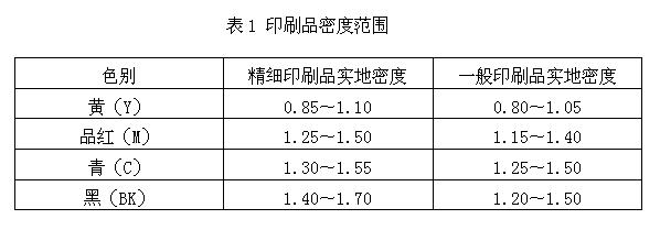 4.6.1 同批產(chǎn)品不同印張的實(shí)地密度允許誤差為:青(C)、品紅(M)≤0.15;黑(B)≤0.20;黃(Y)≤0.10。
